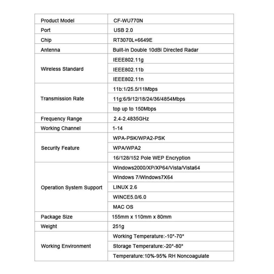 Cifrado: cifrado WEP de 64/128/152 dígitos, cifrado WPA / WPA-PSK, cifrado WPA2 / WPA2-PSK
