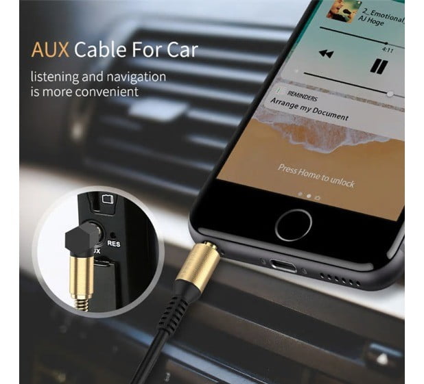 Cable Auxiliar Audio Estéreo 3.5 Mm Negro Resistente Espiral