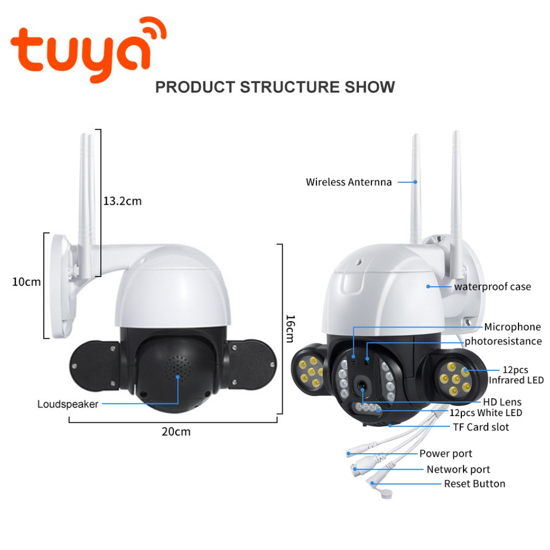 Camara Exterior Wifi Ptz 3MP Audio Tuya Smart Alexa Google