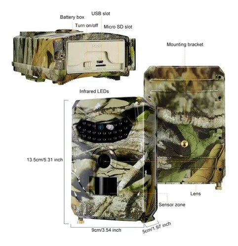 3. Adapta a múltiples entornos – la cámara de caza compacta está situada en un depósito de lluvia de plástico resistente al viento, al polvo y que proporciona una vida útil fiable durante toda la temporada. Lo que es más importante, también se puede utilizar en otros entornos difíciles, como los desiertos o los bosques tropicales.
