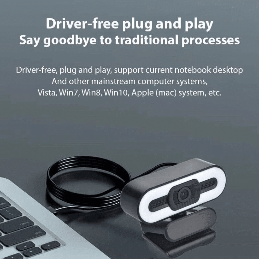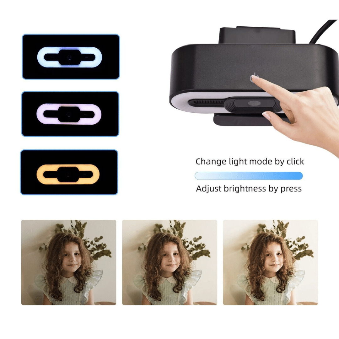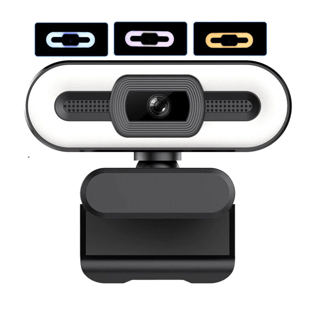 --Esta cámara para PC está equipada con un anillo de luz ajustable y un micrófono omnidireccional con cancelación de ruido para satisfacer sus necesidades en diferentes situaciones. Profesional para conferencias, videollamadas, juegos, etc.
