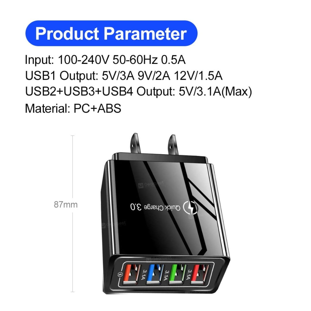 Cargador Celular Tablet Multi Puerto 4 Puertos Usb Quick 3.0