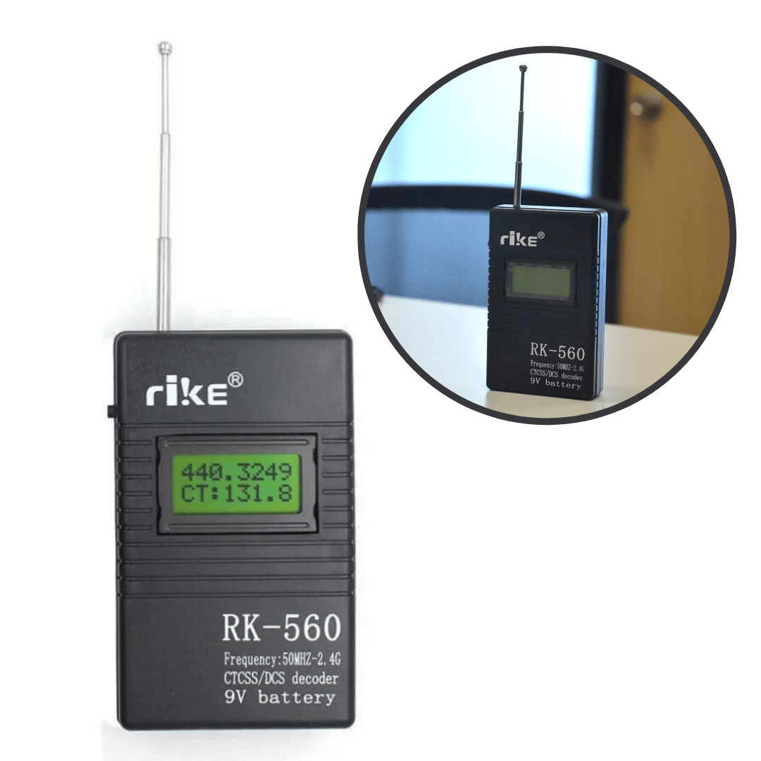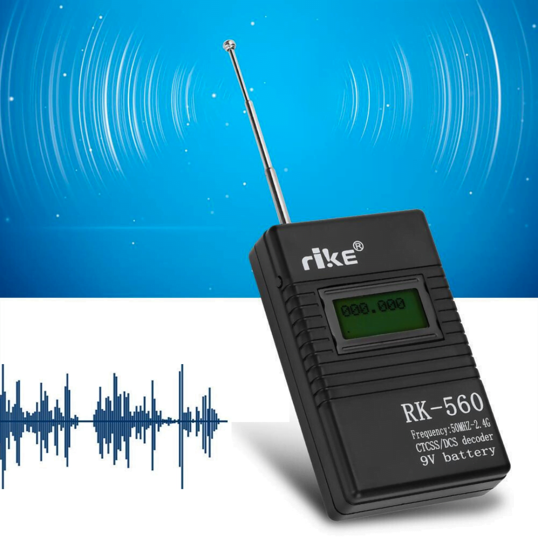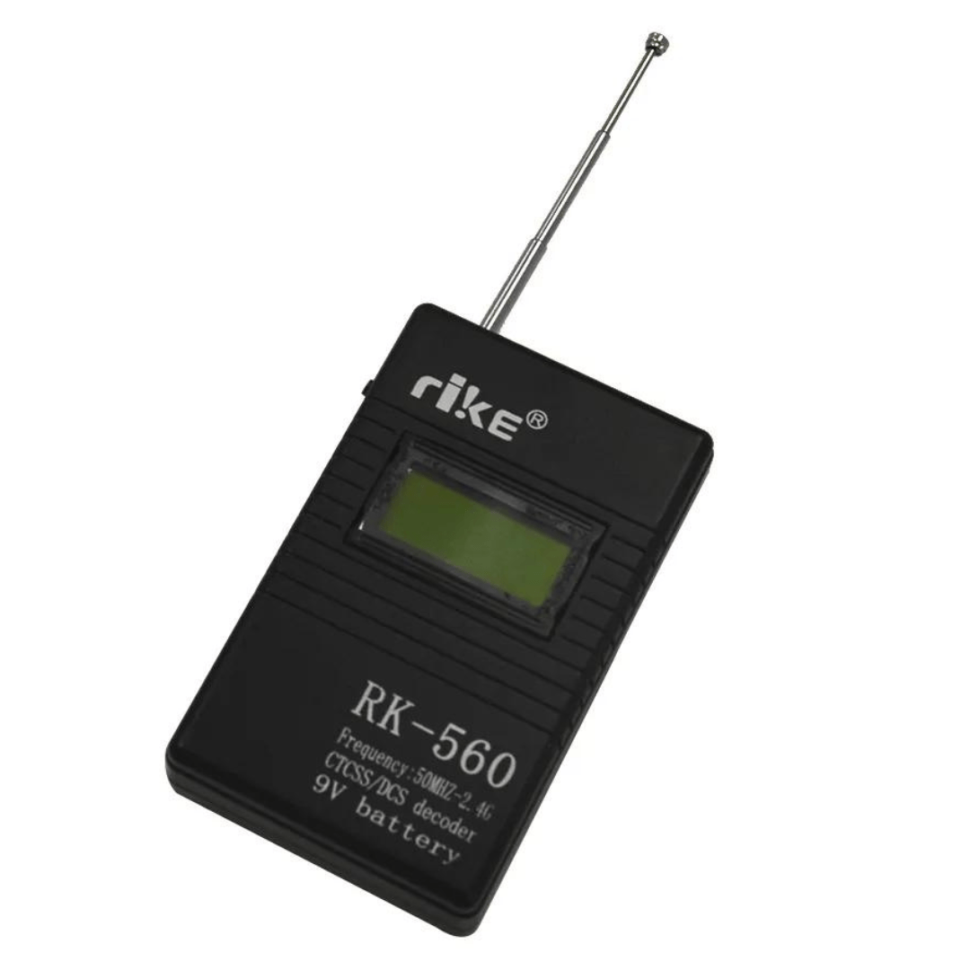 El Contador Frecuencia PK-560 Probador Portátil 50MHz - 2.4 GHz Radio RK560 DCS CTCSS. Alimentado por batería de 9 V (NO INCLUÍDA), rango de medición de 50 MHz-2,4 GHz.