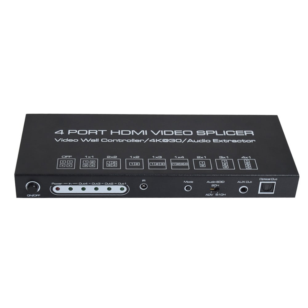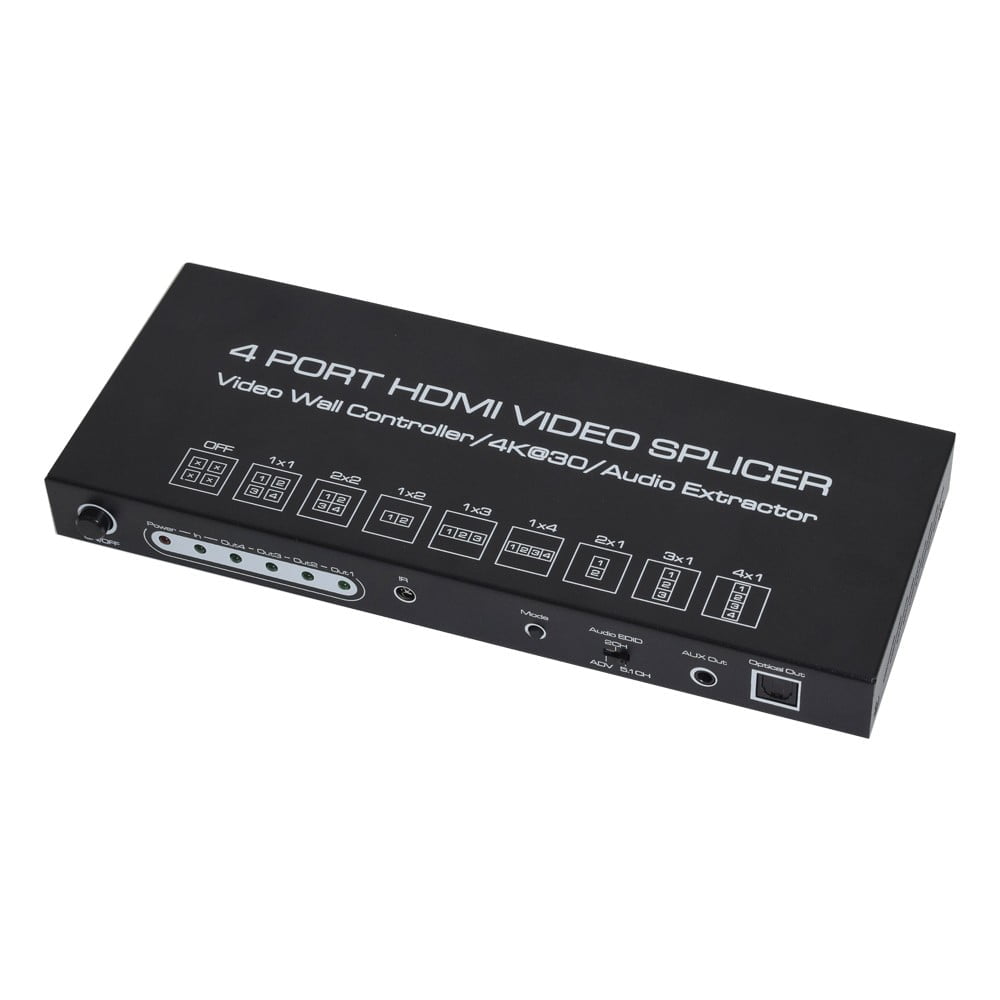 Esta controladora de pantallas te permite conectar hasta cuatro monitores o televisores HDMI desde cuatro fuentes diferentes posibles HDMI/VGA/USB/DVI y ordenarlas en múltiples configuraciones. Ideal para hacer vídeo wall publicitarios o para entretenimiento / informativos.