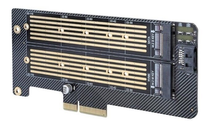 PCIE + SATA protocolo dual de doble interfaz: B Interfaz clave: m.2 NGFF para la especificación SATA (requiere un cable de datos SATA para conectarse a la placa base) + M Interfaz clave: m.2 NGFF (también llamada NVMe, disponible directamente) para PCI- Especificación E