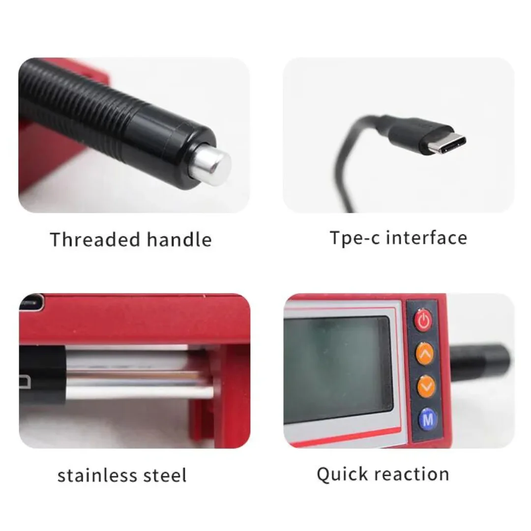 El Durómetro Portátil Profesional de Metales está hecho para medir acero y acero fundido, acero para herramientas de aleación, acero inoxidable, hierro fundido gris, hierro fundido nodular, aleación de aluminio fundido, aleaciones de cobre y zinc (latón), una aleación de cobre y estaño, cobre (bronce).