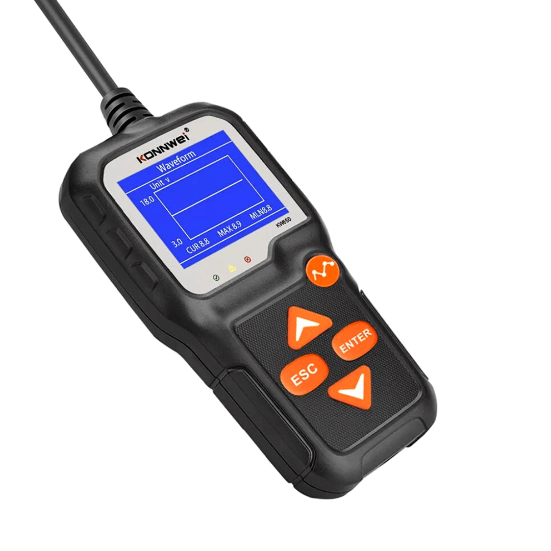 La función exclusiva del analizador Escaner Tester Bateria Konnwei KW650 es el análisis de forma de onda de voltaje, para los principiantes, ayuda a rastrear el cambio de voltaje en tiempo real para encontrar el problema de la batería, para el taller de reparación profesional, sus resultados de monitoreo de voltaje continuo se pueden cargar en la computadora y luego compararlo para lograr el análisis de los sistemas en el automóvil. ¡No te pierdas esta oportunidad! ¡Compra ahora en Importadora Impormel!