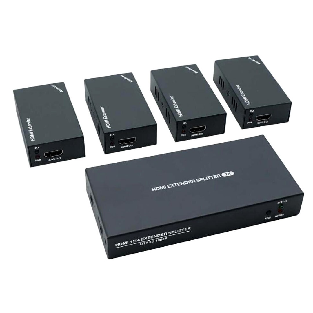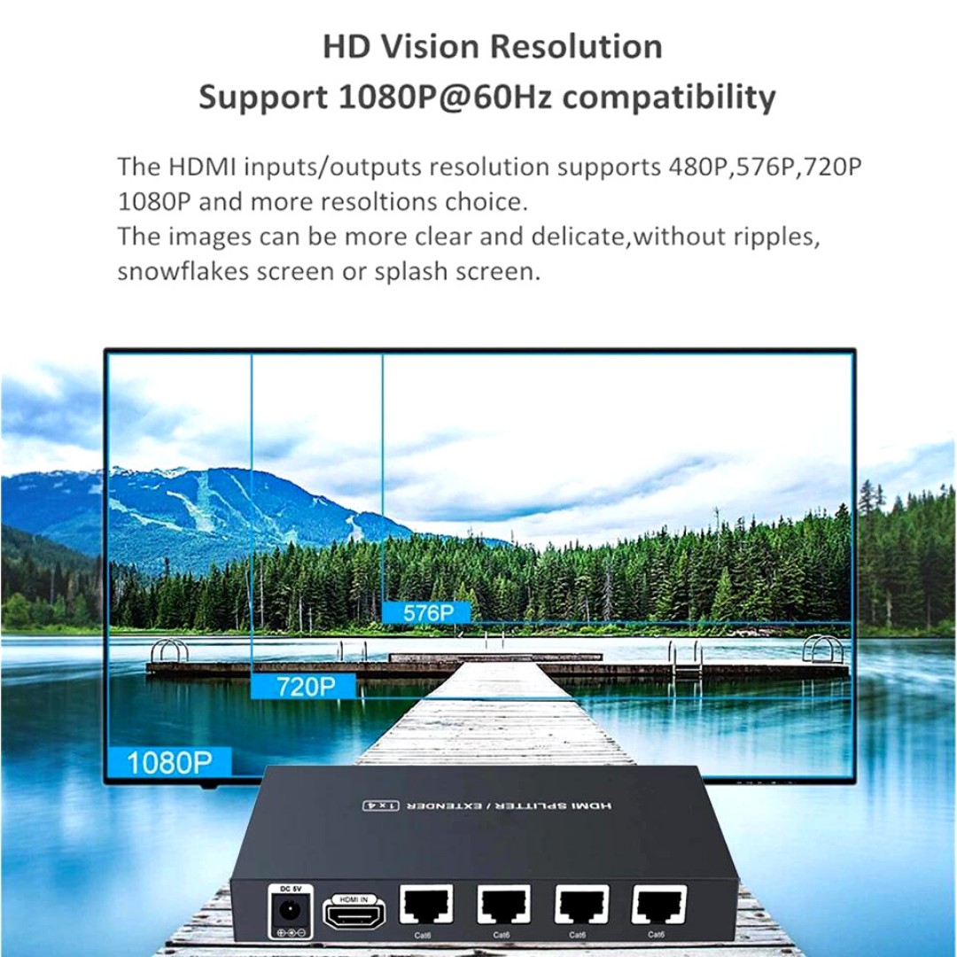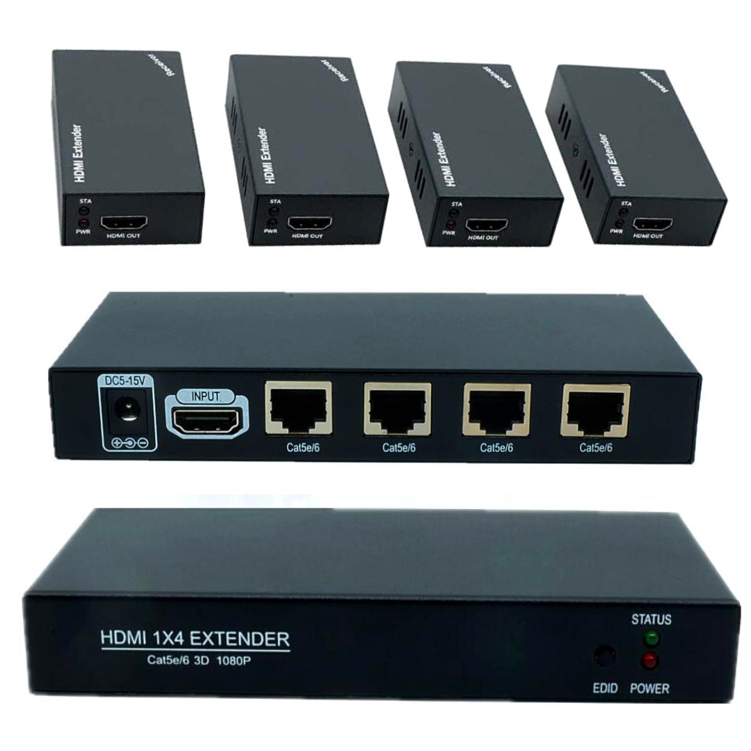 Super calidad 200ft 1x4 HDMI extensor de divisor 60m sobre UTP RJ45 Cat5e Cat6 Cable soporta HD 1080P 1 transmisor a 4 receptores