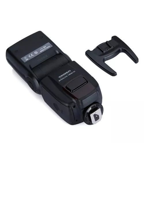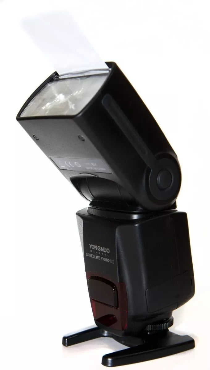 Flash de mano de Yongnuo YN 560 III con un número guia de 58 a ISO 100. Tiene un receptor interno para trabajar con los disparadores remoto dedicados Yongnuo RF 602, RF 603 II, RF 605 o bien cualquier otro disparador colocando en la base un receptor de este flash.