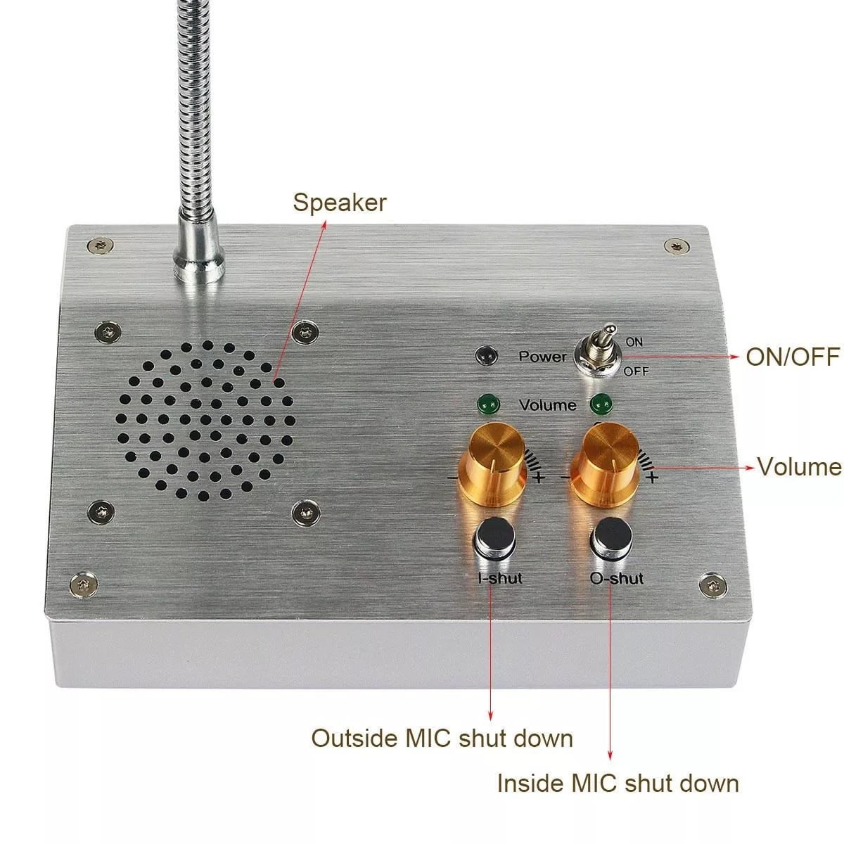 • Tanto el interior como el exterior tienen altavoz y micrófono, el volumen y la sensibilidad del micrófono se pueden ajustar por separado