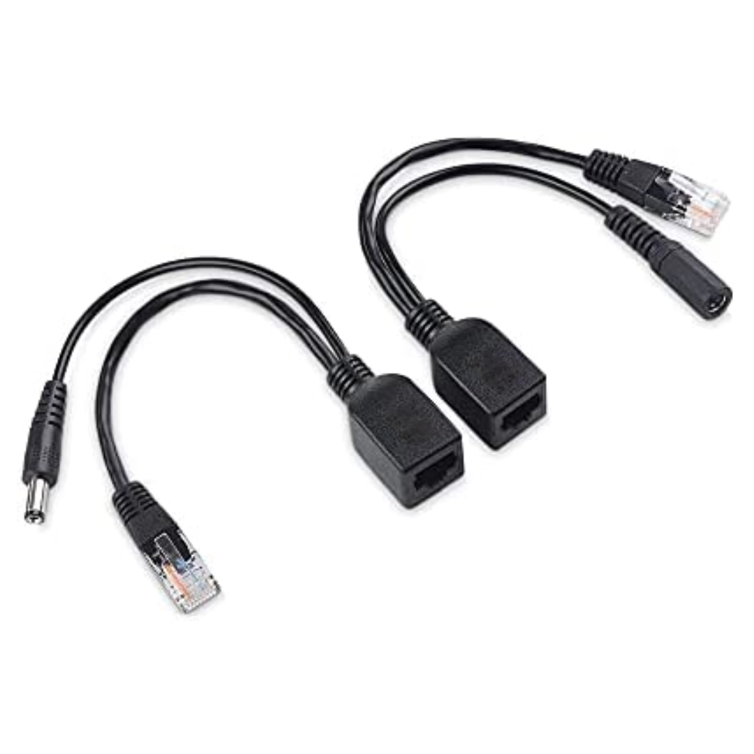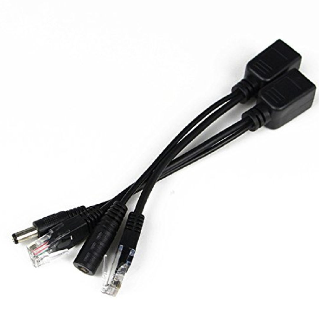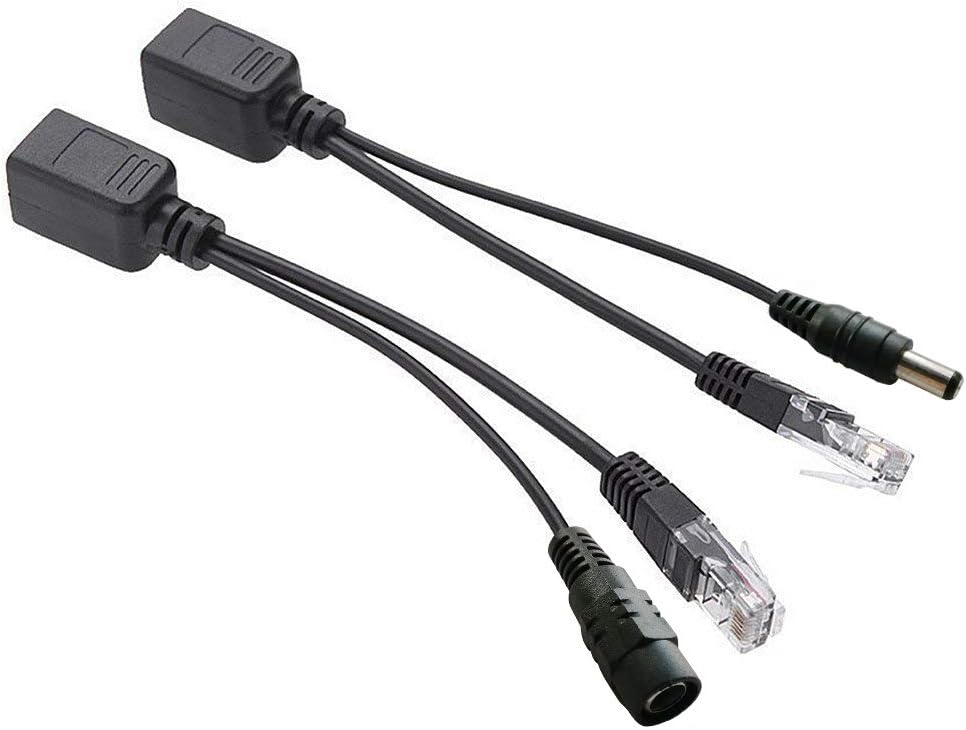 El jack DC de 2.1mm x 5.5mm puede colocar cualquier fuente de alimentacion oara enviar la energia por el cable de red y se colocan estos adaptadores en los 2 extremos.