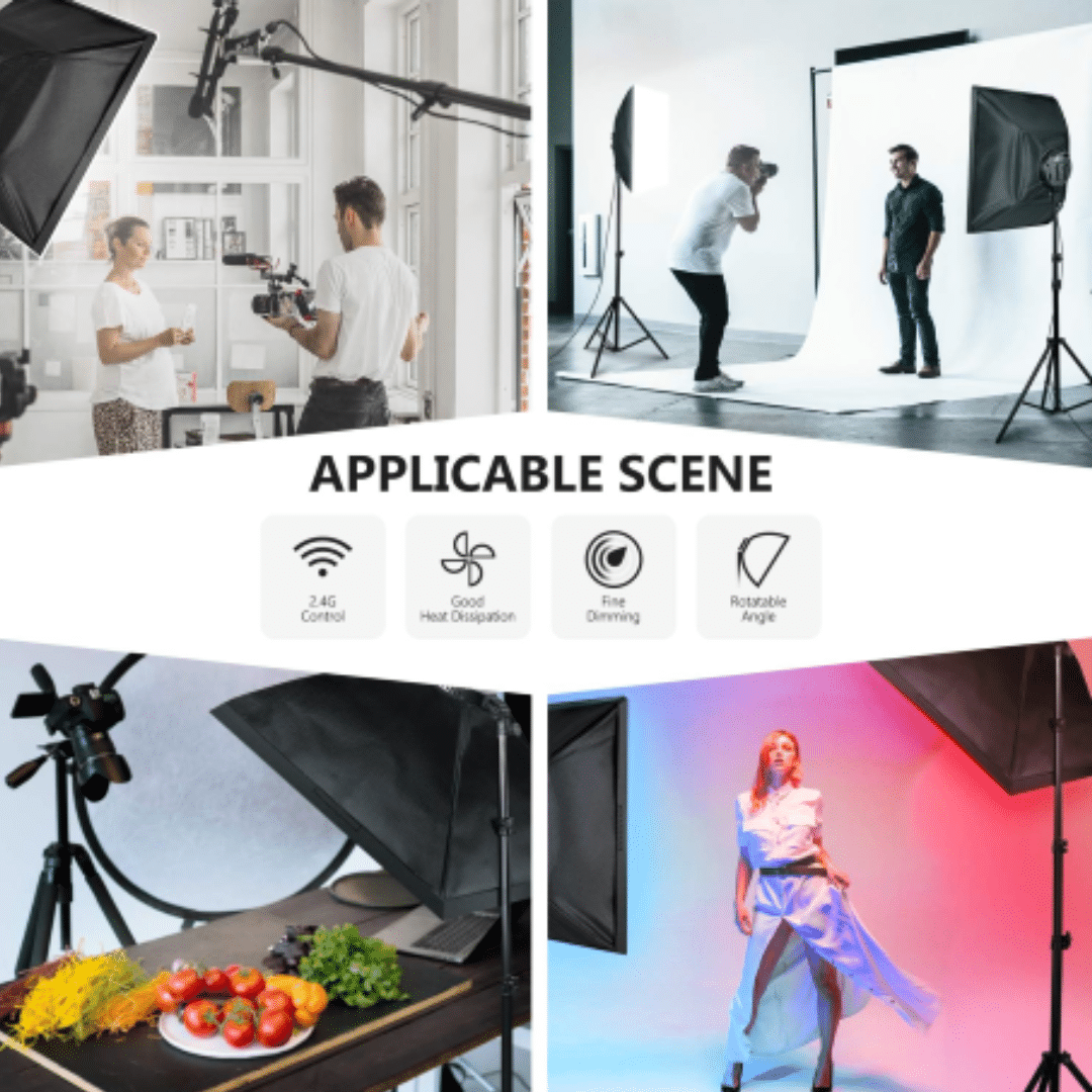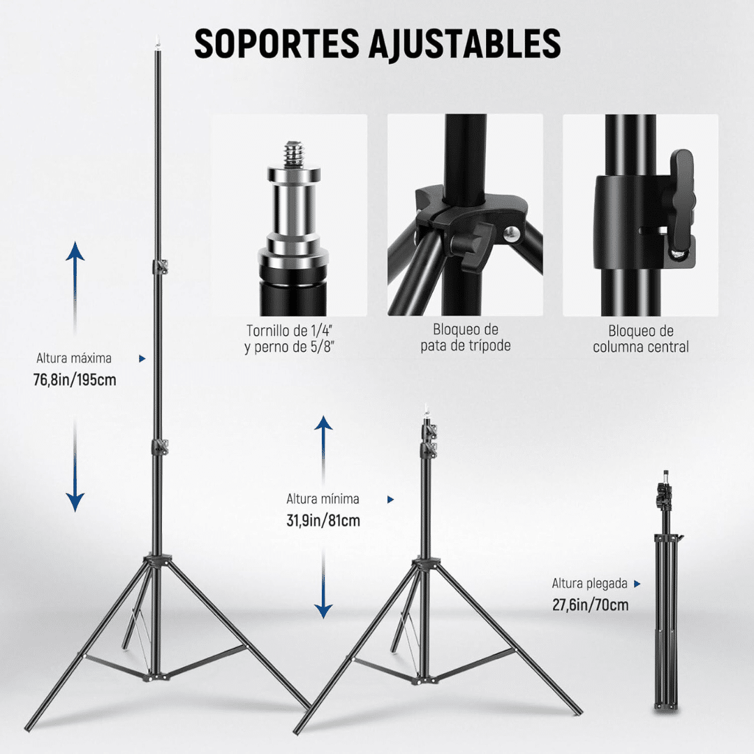 Difusión de Luz Suave: Los softboxes incluidos suavizan la luz intensa de los 48W LED, reduciendo sombras duras y mejorando los tonos de piel.