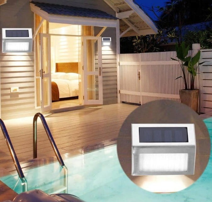Lámparas de luz de escalera solar de acero inoxidable 3LED Patio al aire libre Camino Calle Luz nocturna