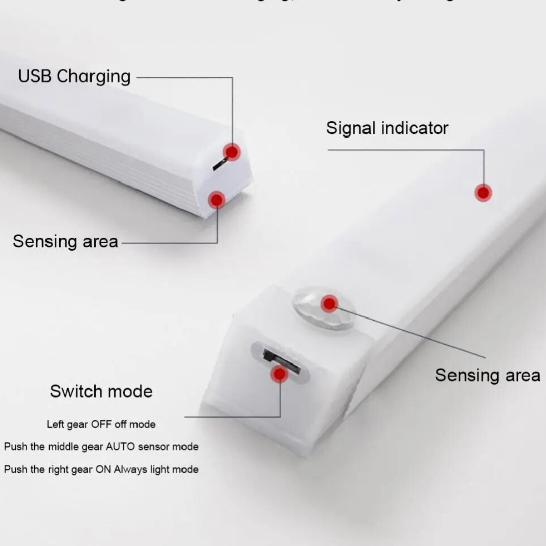 Presentamos nuestra luz LED nocturna con sensor de movimiento, una solución de iluminación versátil y recargable perfecta para gabinetes, guardarropas, cocinas, escaleras y más.