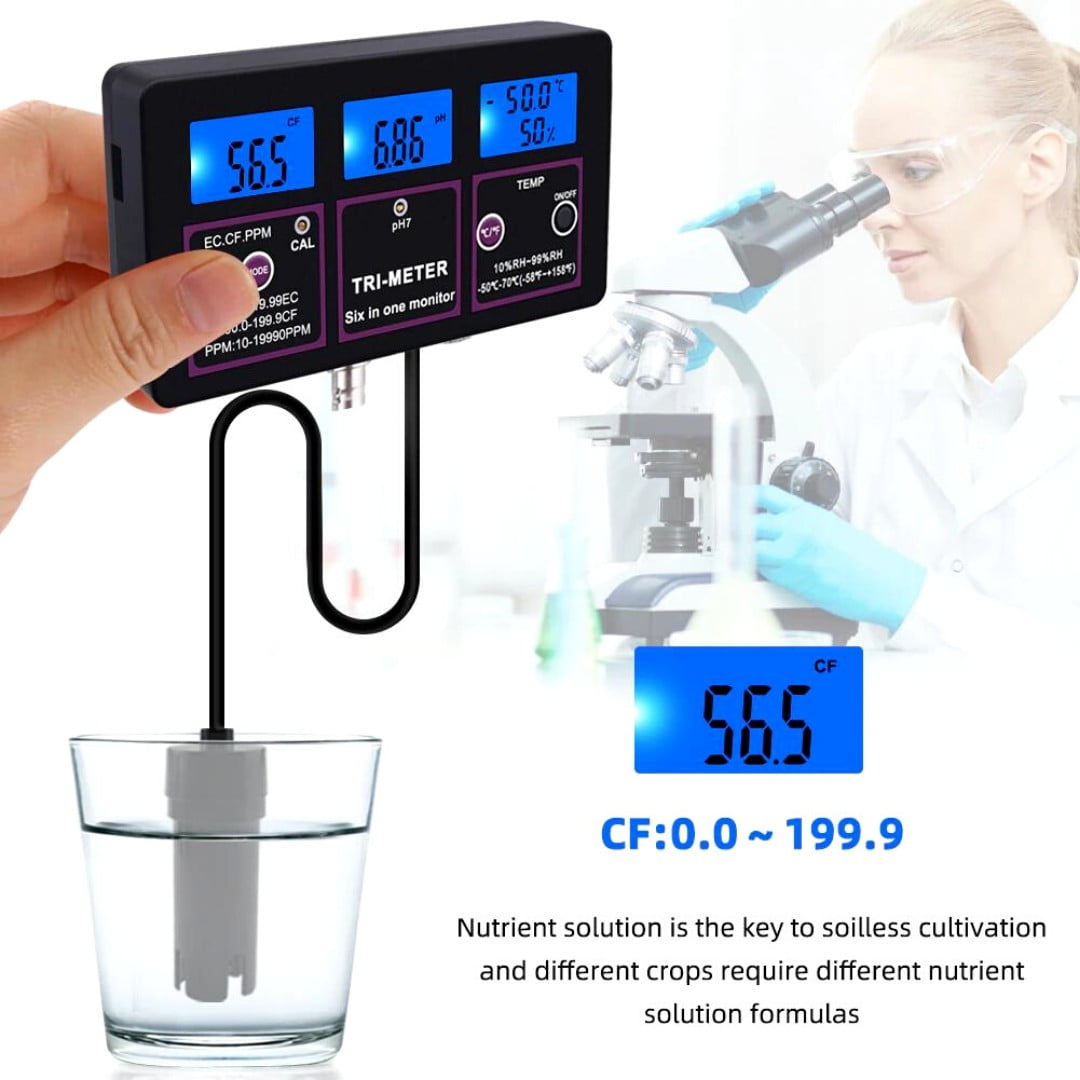 Medidor 6 En 1 Calidad de Agua Multifunción PH EC CF TDS EC