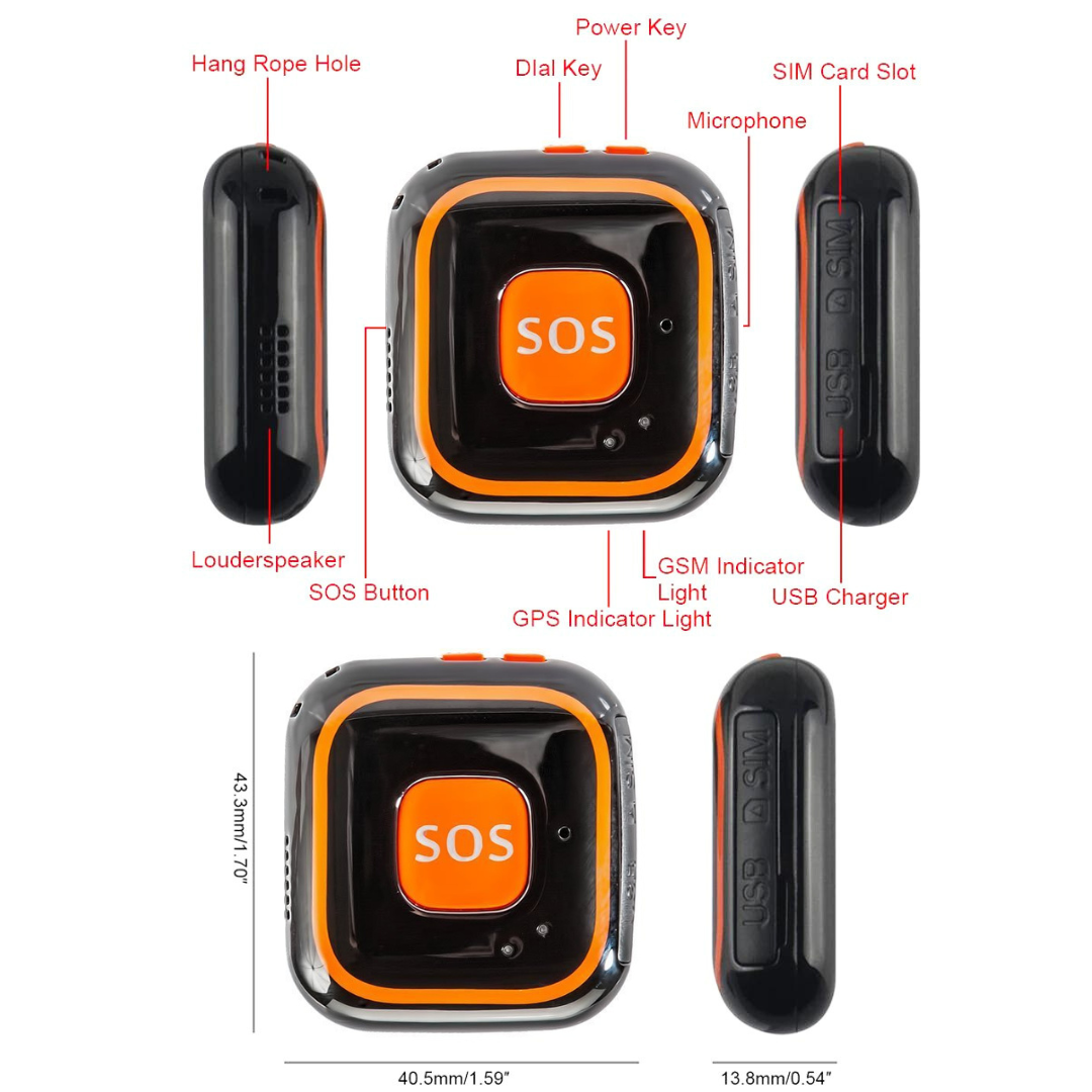 Mini diseño y amplia gama de aplicaciones: pequeño rastreador GPS multifuncional. Sus dimensiones son 47 mm * 24 mm * 18 mm. Este equipo está diseñado para usarlo como reloj, llevarlo colgado o colocarlo donde tu prefieras (bolsos, mochilas, automóviles, camiones, etc.)