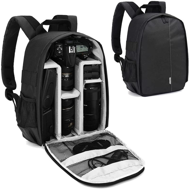 La mochila para camara es compacta y gran capacidad, la mochila está equipada con inserciones acolchadas extraíbles que hacen que sea muy fácil personalizar tu equipo de fotografía en función de tus necesidades. Puedes organizar diferentes cámaras, flashes, lentes y memorias. Cuenta con varios compartimentos y bolsillos de malla para accesorios de tarjetas SD/cables/auriculares.