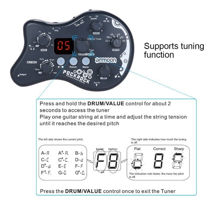 Multiefectos Para Guitarra Pedal Bateria Pock Rock Portatil. Ammoon PockRock es un pedal multiefectos de guitarra portátil. 5 módulos de efectos con 15 tipos de efectos, 40 ritmos de batería, 16 parches preestablecidos y 16 parches de usuario. No es solo una biblioteca de sonidos, sino que también le permite crear su propia biblioteca de sonidos. Con la salida de auriculares y la entrada auxiliar, puede disfrutar de su juego por la noche y no tiene que preocuparse por molestar a los demás. El modo a batería le permite llevarlo a todas partes. ¡Todo lo que necesitas está en PockRock!