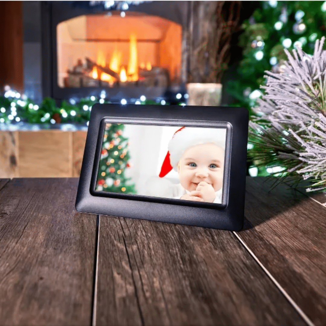 Por que limitarse a una sola foto por marco cuando pueda mostrar varias fotos con una claridad nítida y vívida con este marco de fotos digital. nuestro Porta Retrato con Pantalla LCD de 7". Marco negro. Orientación automática de fotos para adaptarse a los modos vertical u horizontal. El reconocimiento automático de paisaje/retrato emplea un sensor que reconoce la orientación de PhotoFrame y muestra cada foto en su modo adecuado. Comparte innumerables recuerdos uno tras otro. Seleccione efectos de transición como el modo aleatorio y el intervalo de presentación de diapositivas entre fotos.