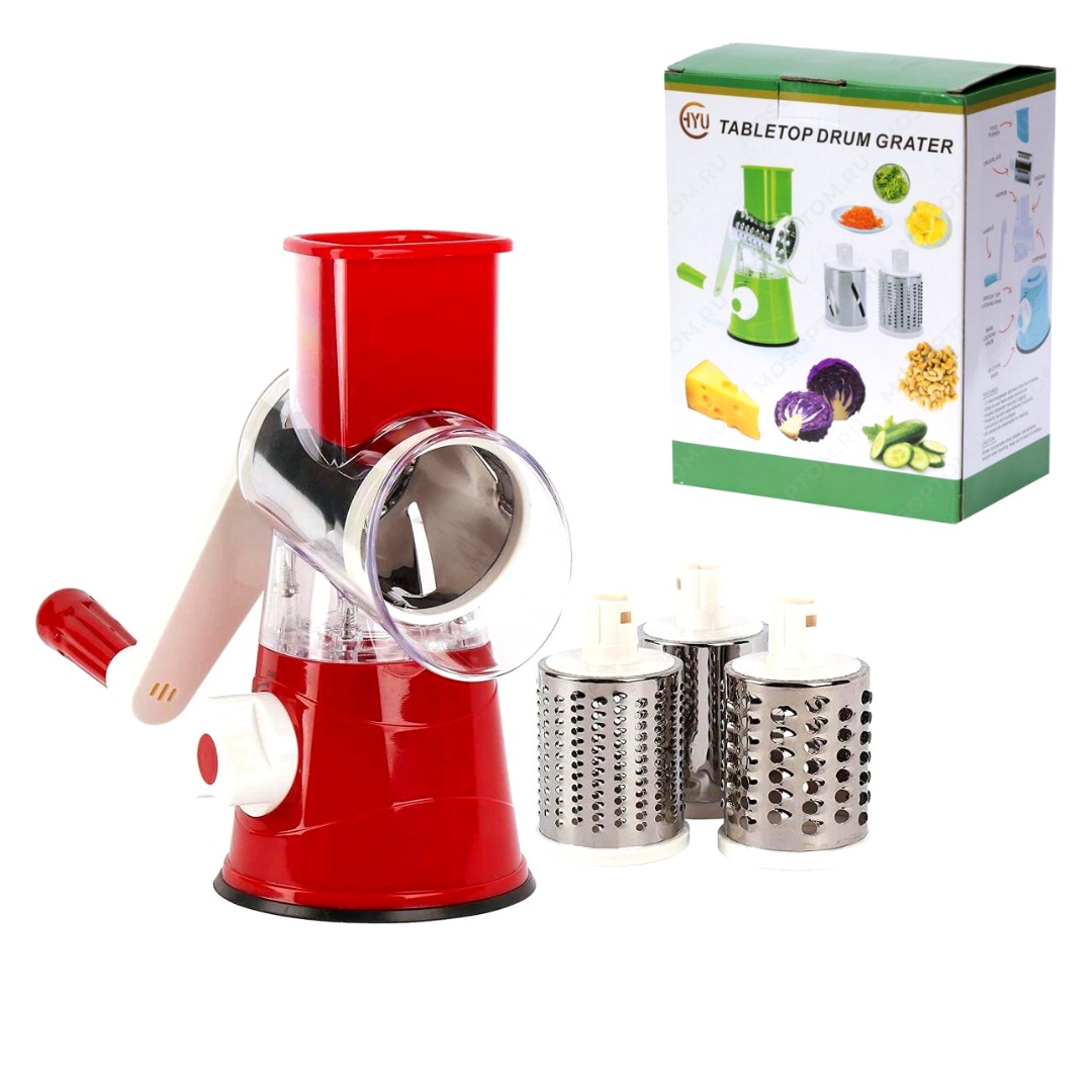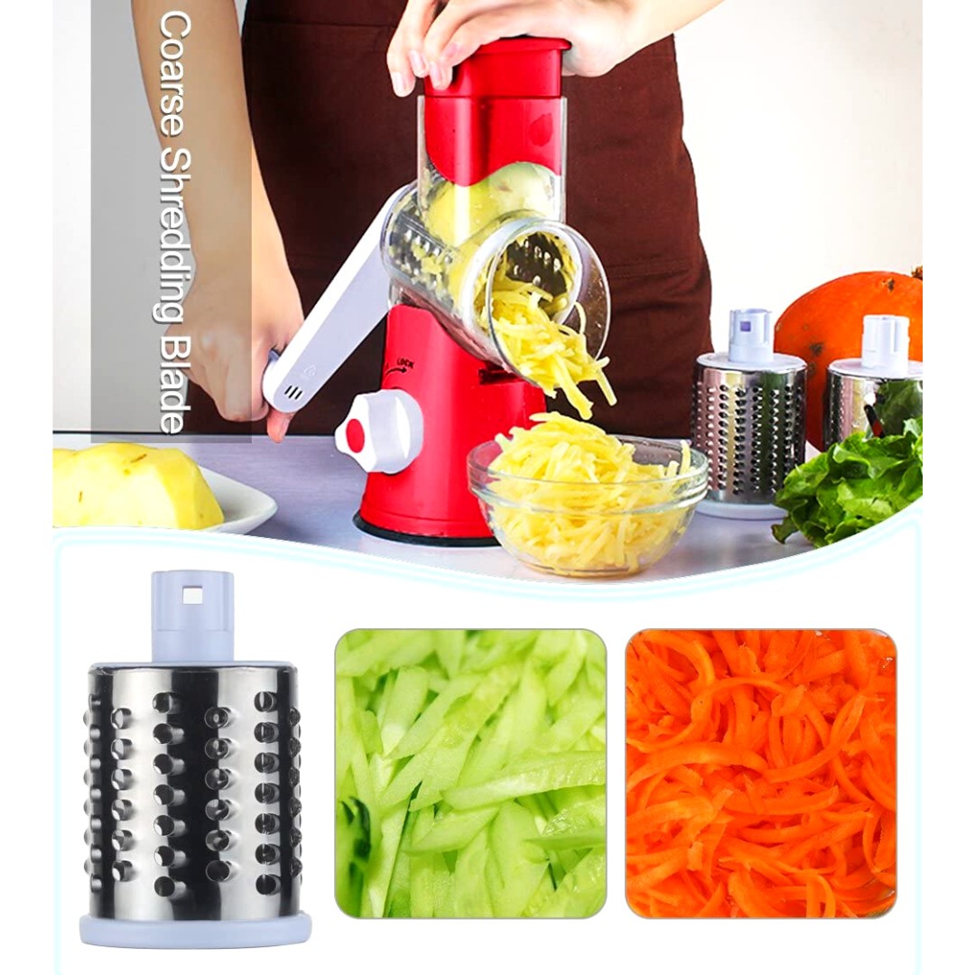 Molino Rayador 3 En 1Raya fácilmente tus frutas y verduras favoritas.Ideal para rayar, cortar, triturar, Verduras, Frutas, Queso, Frutos Secos y más.Desmontable para facilitar la limpieza.Materiales: Acero inoxidable y plástico.Base con ventosa ultra fuerte para fijarlo en superficies lisas.