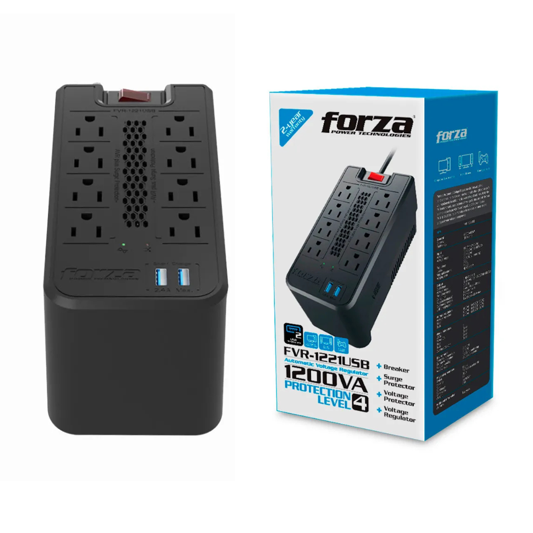 Regulador De Voltaje Automático Forza 1200va 8 Tomas 2 Usb 110V FVR-1221USB