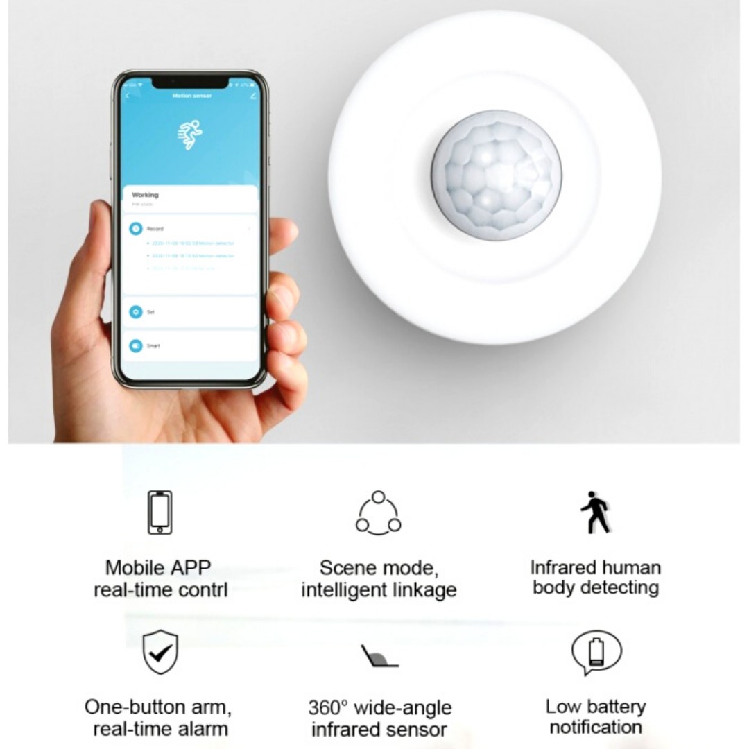 El sensor de movimiento 360 grados WIFI de la línea Tuya Smart Life puede ser instalado en pasillos, sala de reuniones, habitaciones, etc.