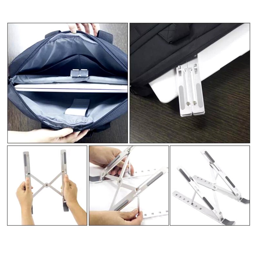 DISEÑO PLEGABLE: Plegable a tamaño compacto, pesa solo 8.36 oz. y tiene una bolsa de recolección. Fácil de poner en una bolsa de computadora. Este soporte para computadora portátil es ideal para viajeros de negocios y presentaciones corporativas.