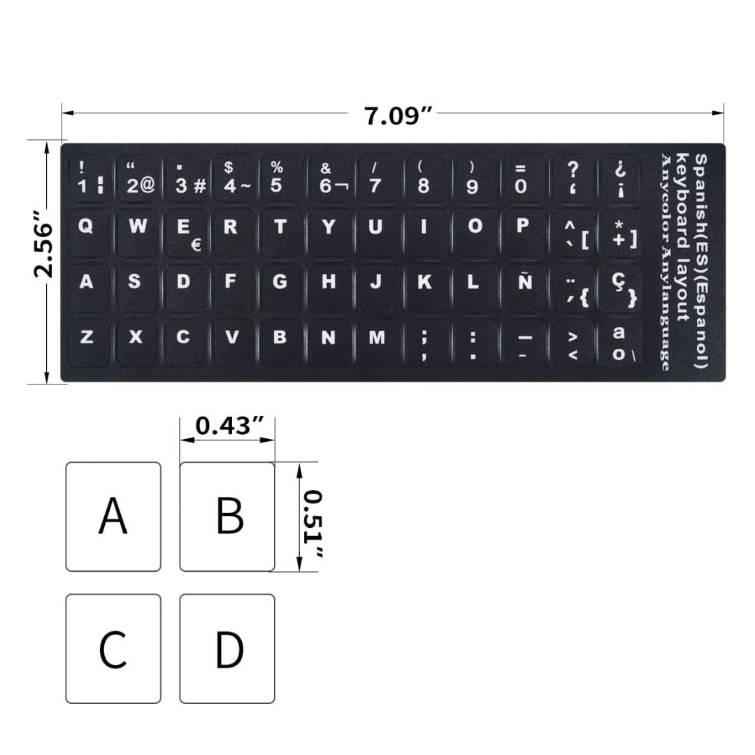 FÁCIL DE APLICAR Y QUITAR: Las pegatinas de teclado español son fáciles de aplicar y quitar sin dejar ningún residuo. Las calcomanías de teclas individuales del teclado se han cortado cuidadosamente.