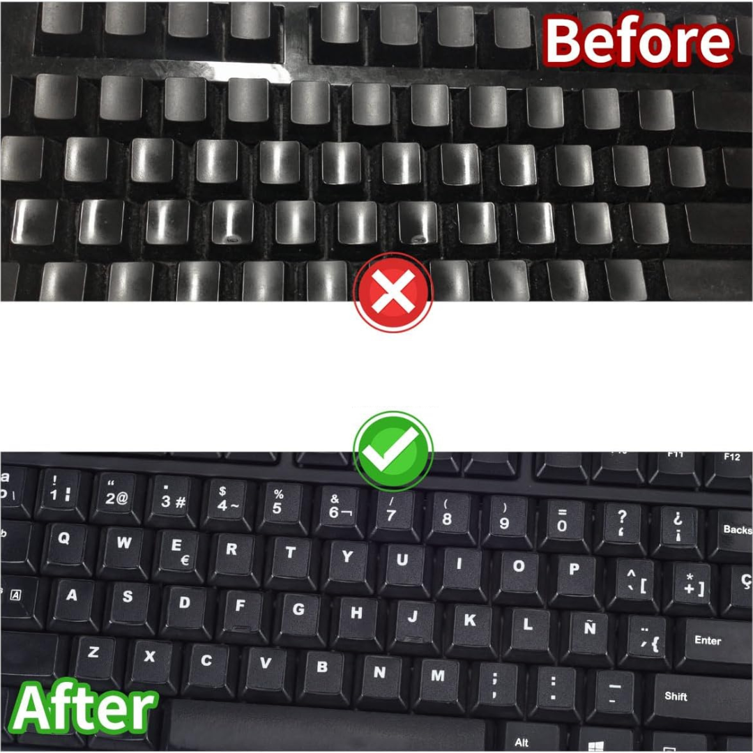 RENOVAR EL TECLADO DESGASADO: Las pegatinas para teclado están diseñadas para restaurar cualquier letra descolorida o desgastada, haciendo que tu teclado se vea nuevo de nuevo. De esta manera, no tiene que gastar mucho dinero en un nuevo teclado.