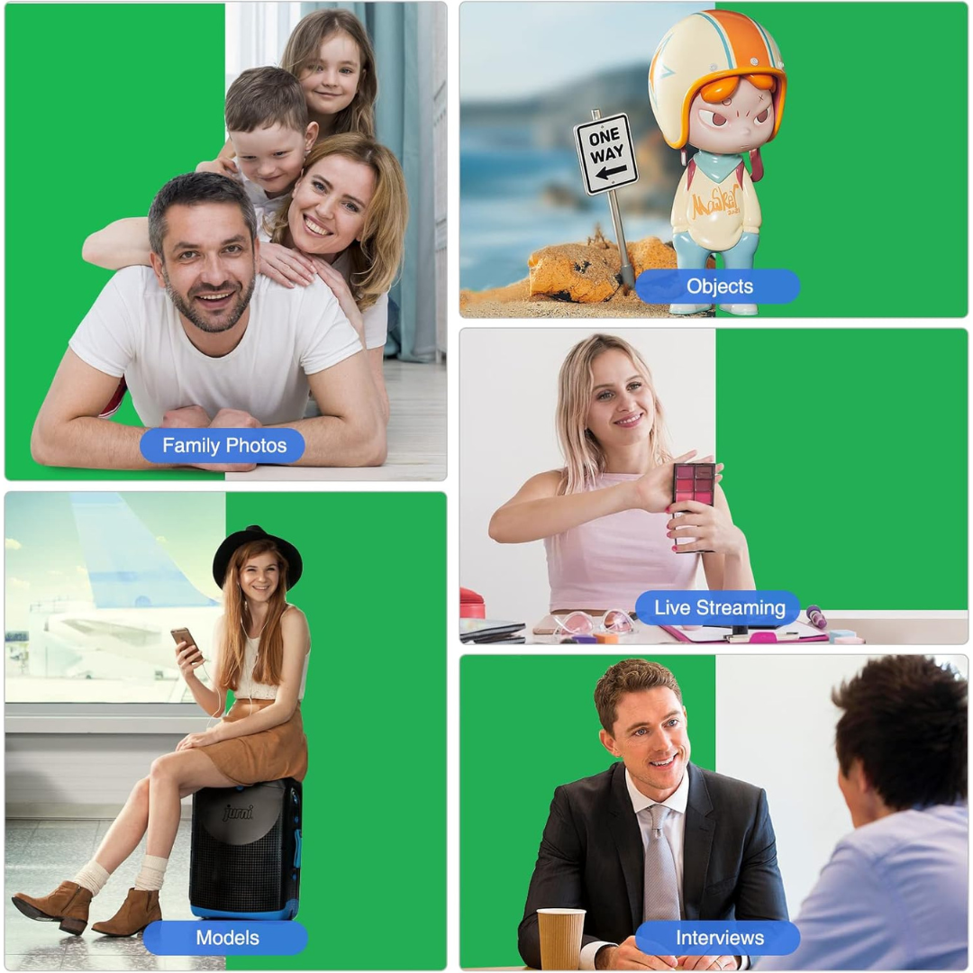 La tela de fondo verde es perfecta para fotografía de productos, retratos, televisión, producción de video, fotografía digital, juegos en vivo, entrevistas, YouTube, TikTok, etc.