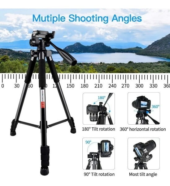 Con un cabezal de giro de 3 vías, permite el movimiento de inclinación y giro. Permite un movimiento panorámico de 360 °, una rotación vertical de 270 ° y una bisagra adicional que le permite girar la cámara 90 ° hacia un lado para ayudar a disparar en orientación horizontal o vertical con solo 2 perillas de bloqueo y una manija. Le permitirá capturar imágenes más fluidas y con un aspecto más profesional sin los temblores como un video grabado a mano, adecuado tanto para fotógrafos aficionados como profesionales.