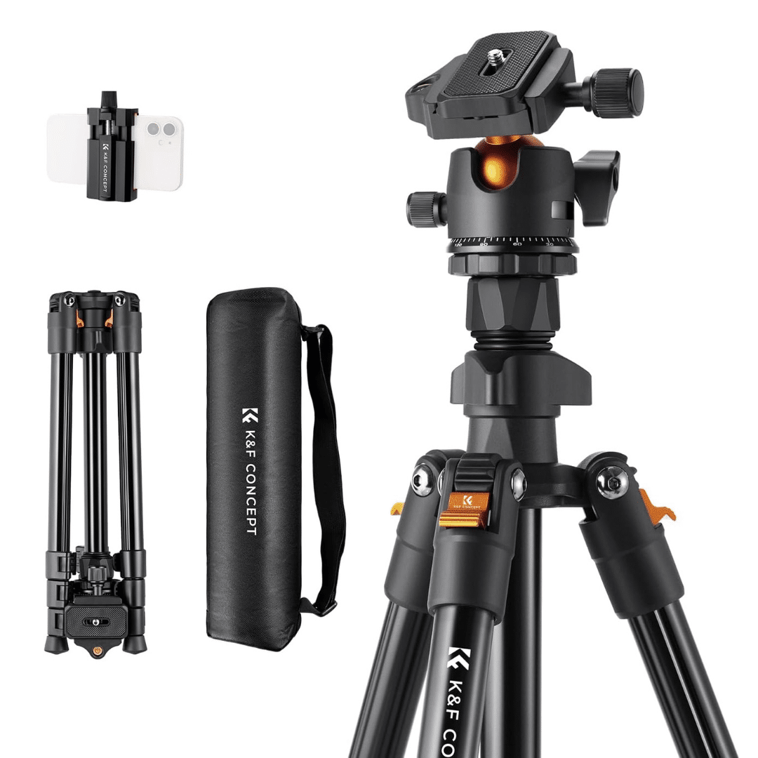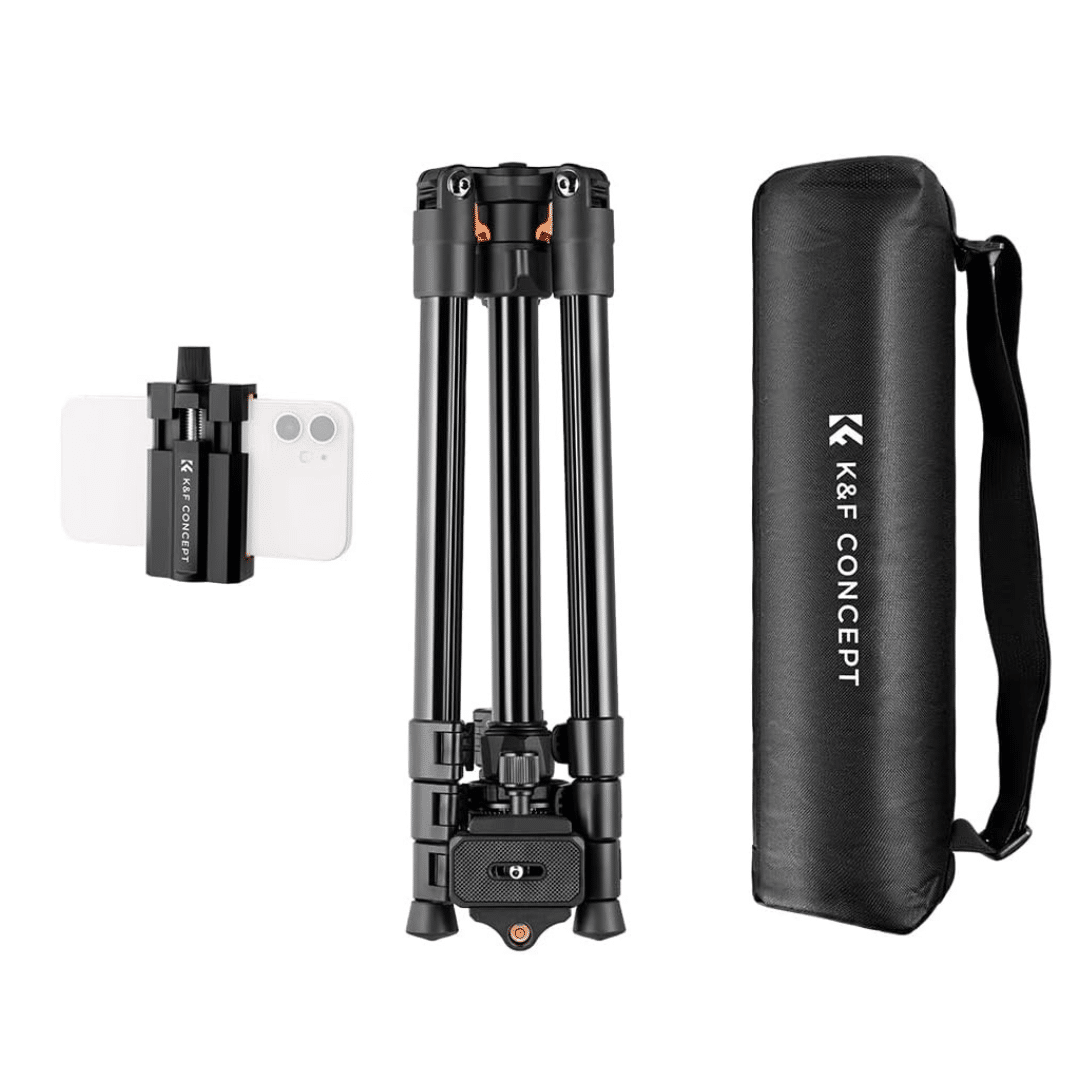 Tripode K&F CONCEPT 64″ Capacidad 17.6 lbs 8 kg Clip para Celular Streaming Vlog O234A1+BH-36