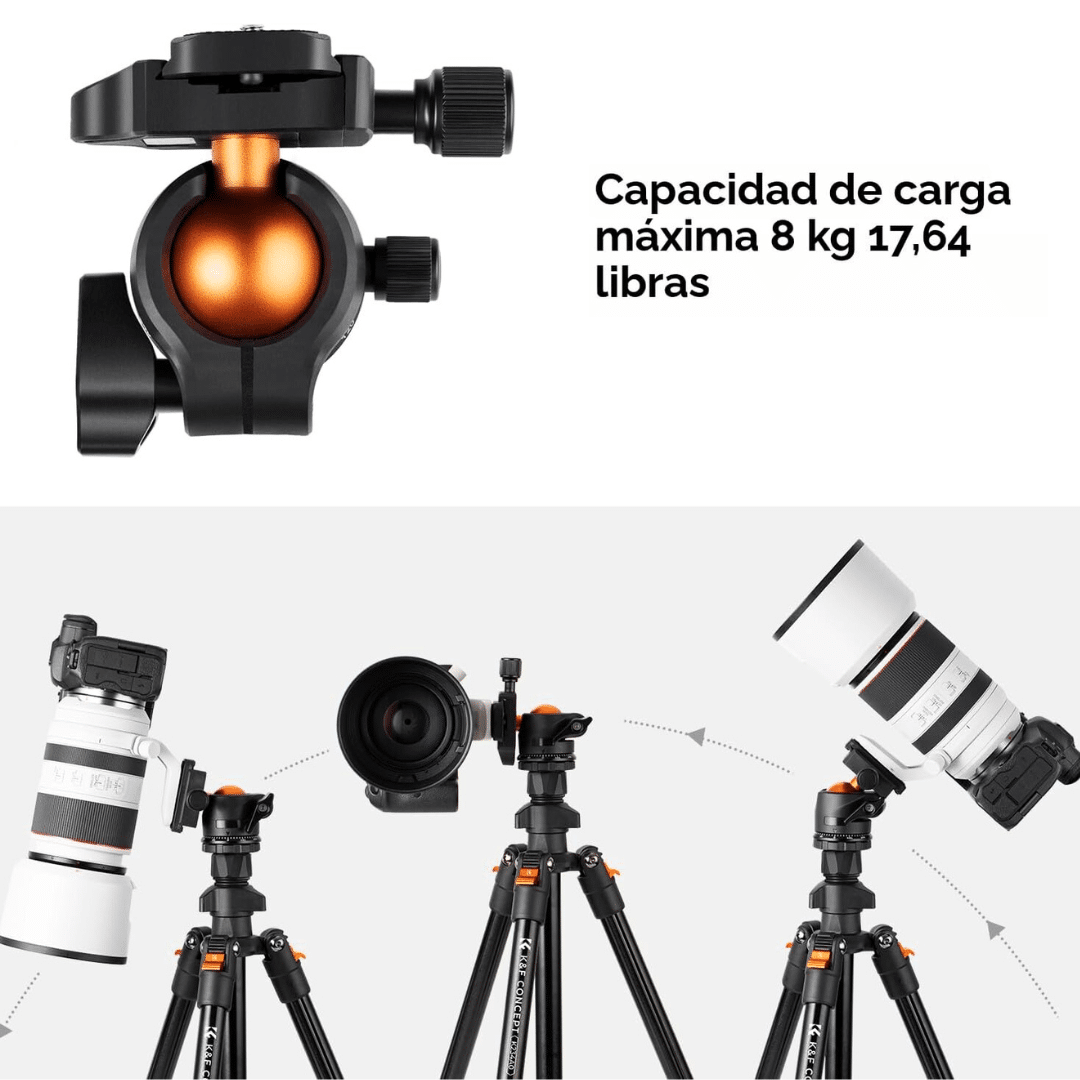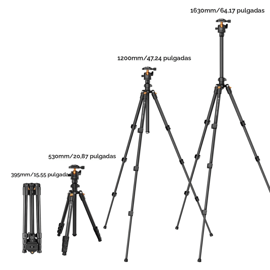 El Tripode K&F Concept es un soporte versátil de aluminio diseñado para fotografía y video, ideal para viajes por su diseño compacto, ligero (aprox. 1.2 kg) y altura ajustable de hasta 163 cm. Sirve para estabilizar cámaras DSLR, mirrorless y celulares, permitiendo tomas panorámicas, en ángulos bajos y cenitales gracias a su rótula de bola de 360° y columna central reversible. ¡No te pierdas esta oportunidad! ¡Compra ahora en Importadora Impormel! Y adquiere este increíble producto.