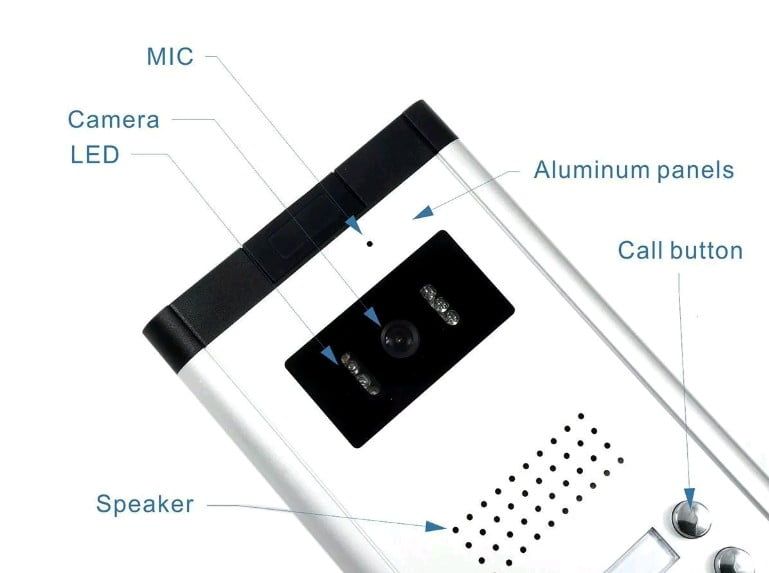 La unidad exterior tiene 3 botones de llamada, que pueden llamar a 3 casas por separado. La carcasa exterior de aleación de aluminio también proporciona una buena protección.